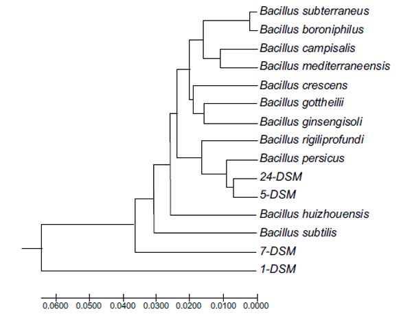 | 24-DSM | Bacillus persicus strain B48 | 98 | 55 |