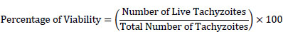 For quantification, the number of live and dead tachyzoites using a Neuberger counting chamber (Neobar slide) was counted. The percentage of viability was also calculated by the formula (1):