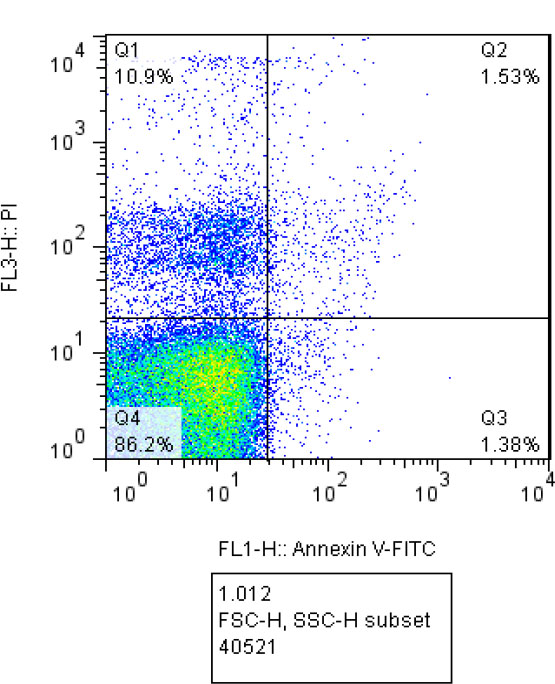 Flow cytometry analysis of the control group without treatment (Q1: Necrosis, Q2: Late apoptosis, Q3: Early apoptosis, Q4: Live cells).