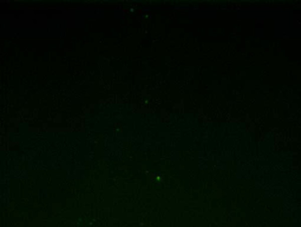 Negative control (E. coli) using the QBC ParaLens™ system, (60x ParaLens objective w/oil, Olympus CH40 compound microscope).